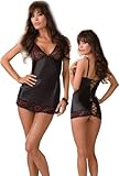 Sexy Feminine Black Satin Babydoll Lingerie SetFeature for this item